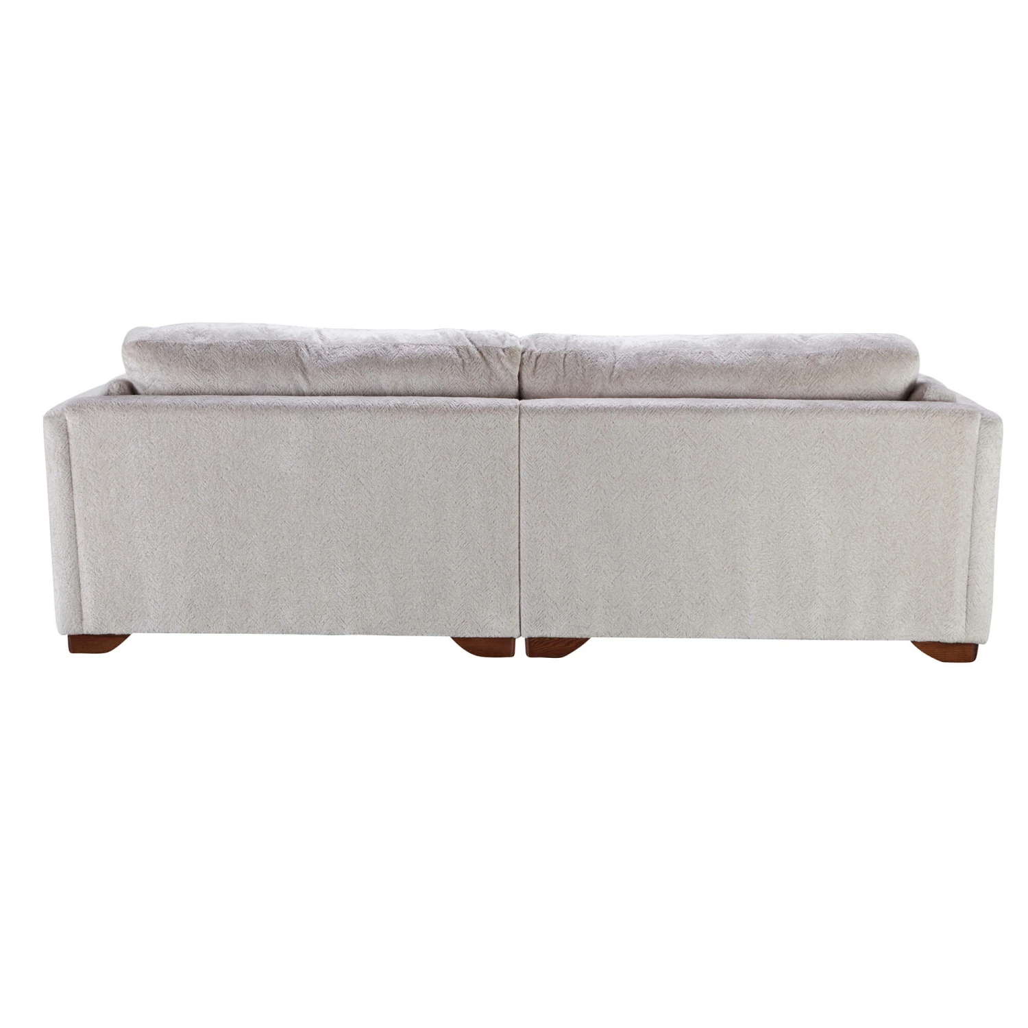 Infuse your living room with a touch of glamour and timeless style, with the Mackenzie Ivory Chevron Textured Fabric 4 Seater Sofa. This inviting sofa boasts a beautiful ivory fabric with a subtle shimmer and a captivating textured chevron effect, making it a stunning focal point for any living space. Two luxury feather-filled scatter cushions in a rich umber colourway with a geometric pattern, and two simple steel grey bolsters, perfectly complement the overall design.