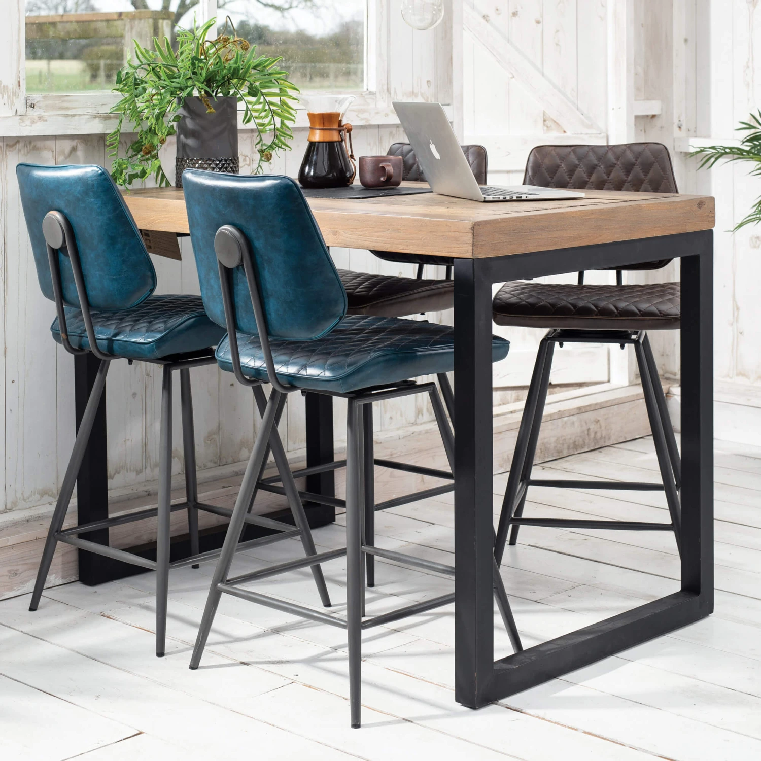 The Malmo makes use of this reclaimed wood and combines the rustic timbers with metal frames and wooden handles, topped off with a water based sealer. This rectangular bar table is made using reclaimed wood for a two-tone finish and sits on metal legs in black, for a truly industrial inspired piece of furniture.