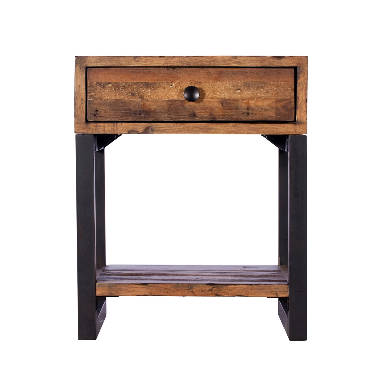 The side table is made using reclaimed wood and sits on metal legs in black, for a truly industrial inspired piece of furniture.