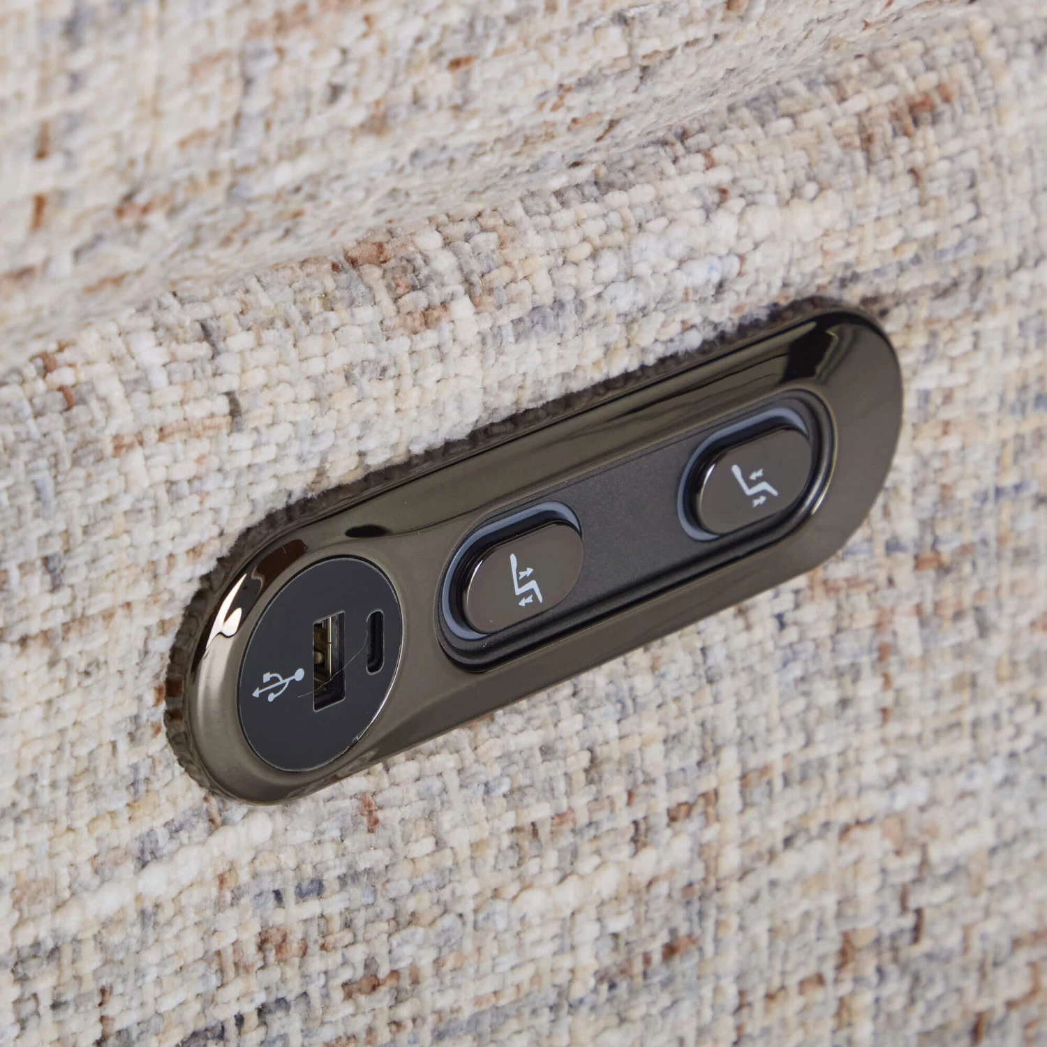 Equipped with an electric motor, the Marco allows you to electronically adjust the position of the backrest and footrest at a touch of a value. Easily controlled by a control panel located on the side of the armrest, it also has a USB and USB-C port that allows you to conveniently charge your device while you relax.