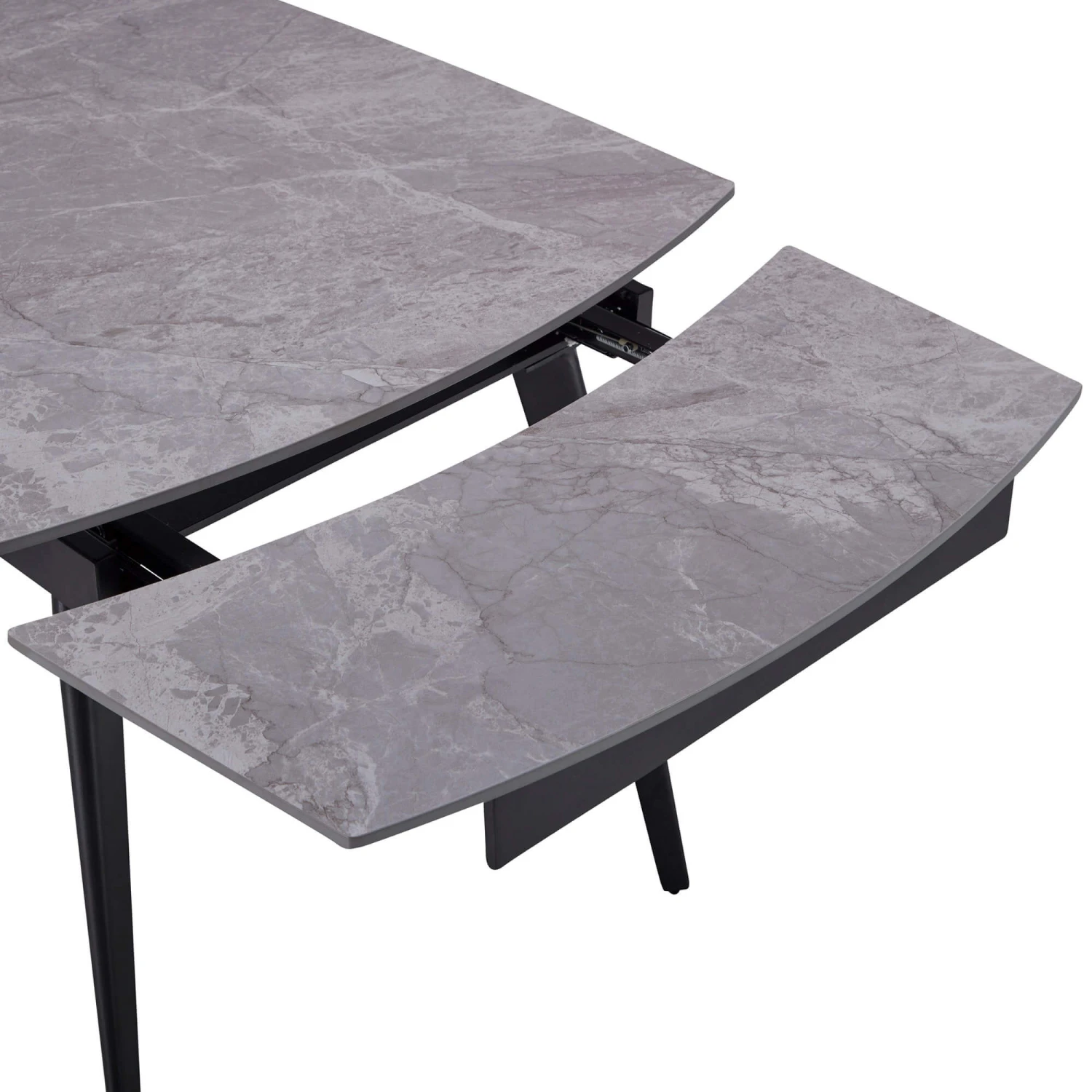 The Monteverdi dining table is a sleek and stylish piece that will elevate any dining space. Its smooth, dark grey sintered stone top with its soft marble effect is both beautiful and durable, while the tapered black legs add a touch of sophistication. The table’s extending mechanism allows you to adjust the size to 180cm allowing you to accommodate any number of guests, making it perfect for both everyday meals and special occasions.
