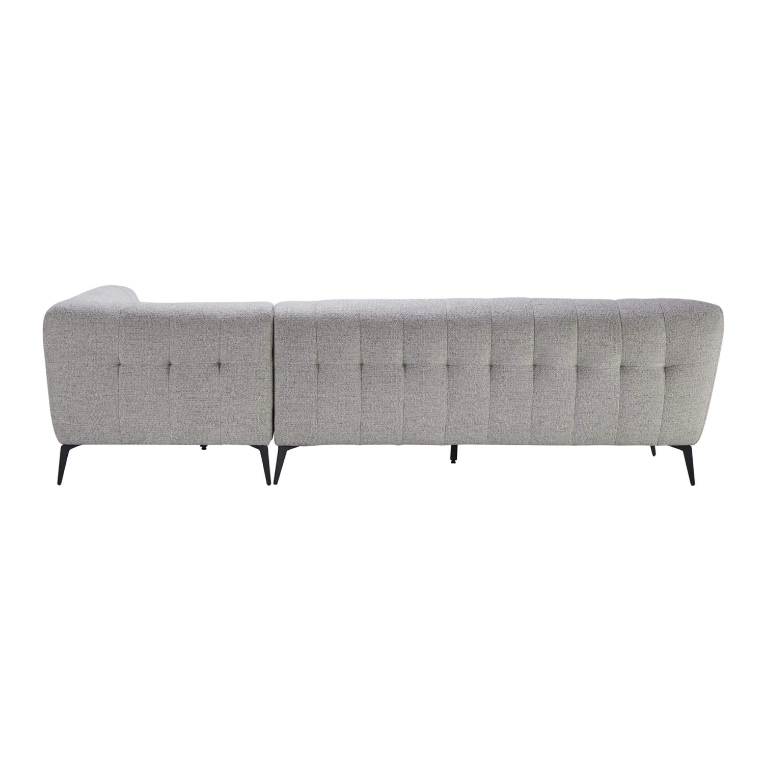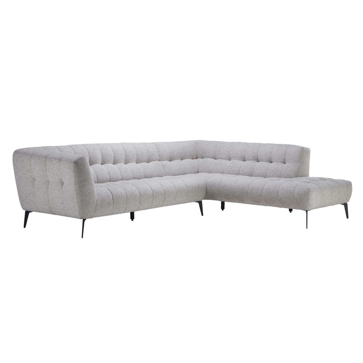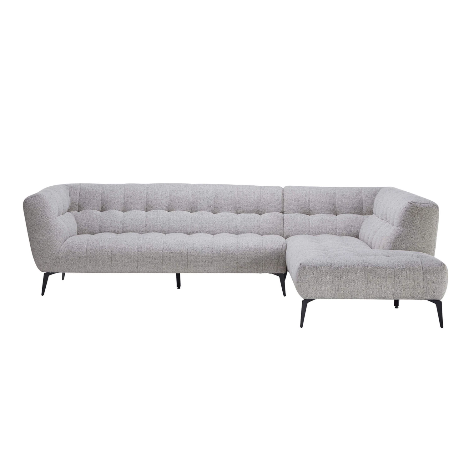 Upholstered in a luxurious light grey fabric, the Montreal has a pin-tuck tufting and deep value detailing, adding depth and creating an attractive grid-like pattern. With slender matt black metal legs, it boasts a modern boutique aesthetic, which is sure to elevate any interior with its air of style and sophistication.
