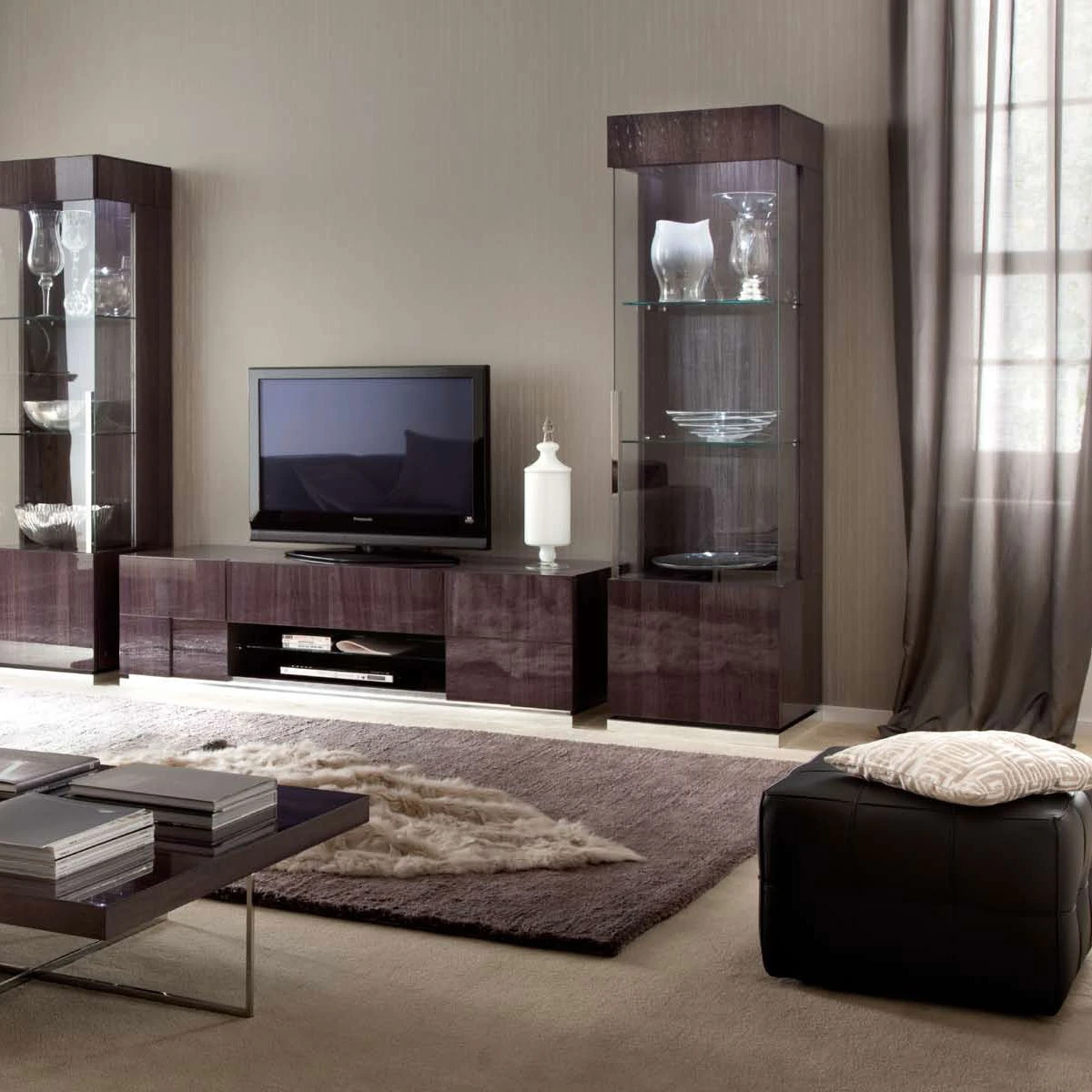 The beautiful Italian designed Monza range will give your interior space a striking update. The Koto Grey High Gloss Vitrine has a right hand facing single door and stunning built-in lighting to create an ambience for your chosen room. The design has a highly lacquered finish, chrome detailing with glass shelving and door. The cabinet is built to display your most prized possessions complemented by the built-in lighting. It has a height of 190.4cm and a width of 53.5cm.