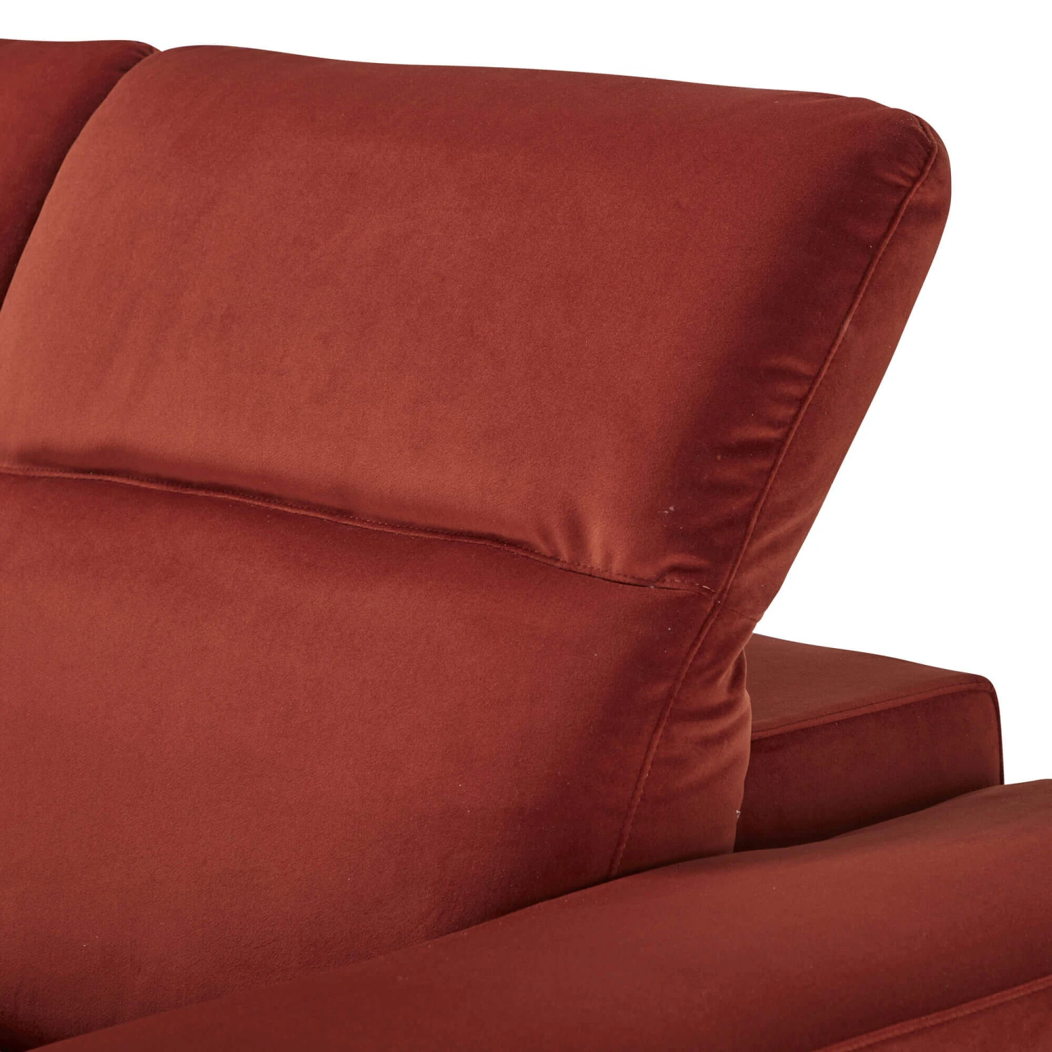 The Dado Rust Fabric Corner Chaise Sofa by Natuzzi Editions is designed with elegance and comfort in mind. Upholstered in a rich and premium rust fabric, the Dado sofa has a sleek silhouette and a L-shaped design with manually adjustable headrests, a cushiony padded armrest and slim black metal legs, providing a plush and wonderfully comfortable seating experience. With a clean outline and a supportive frame, the Dado sofa allows you to maximise your floor space whilst providing ample seating for your family and friends. Easily able to elevate any setting, the Dado sofa is undoubtably a timeless piece due to its sophisticated appearance and practical features, making it the perfect addition to any contemporary home décor.