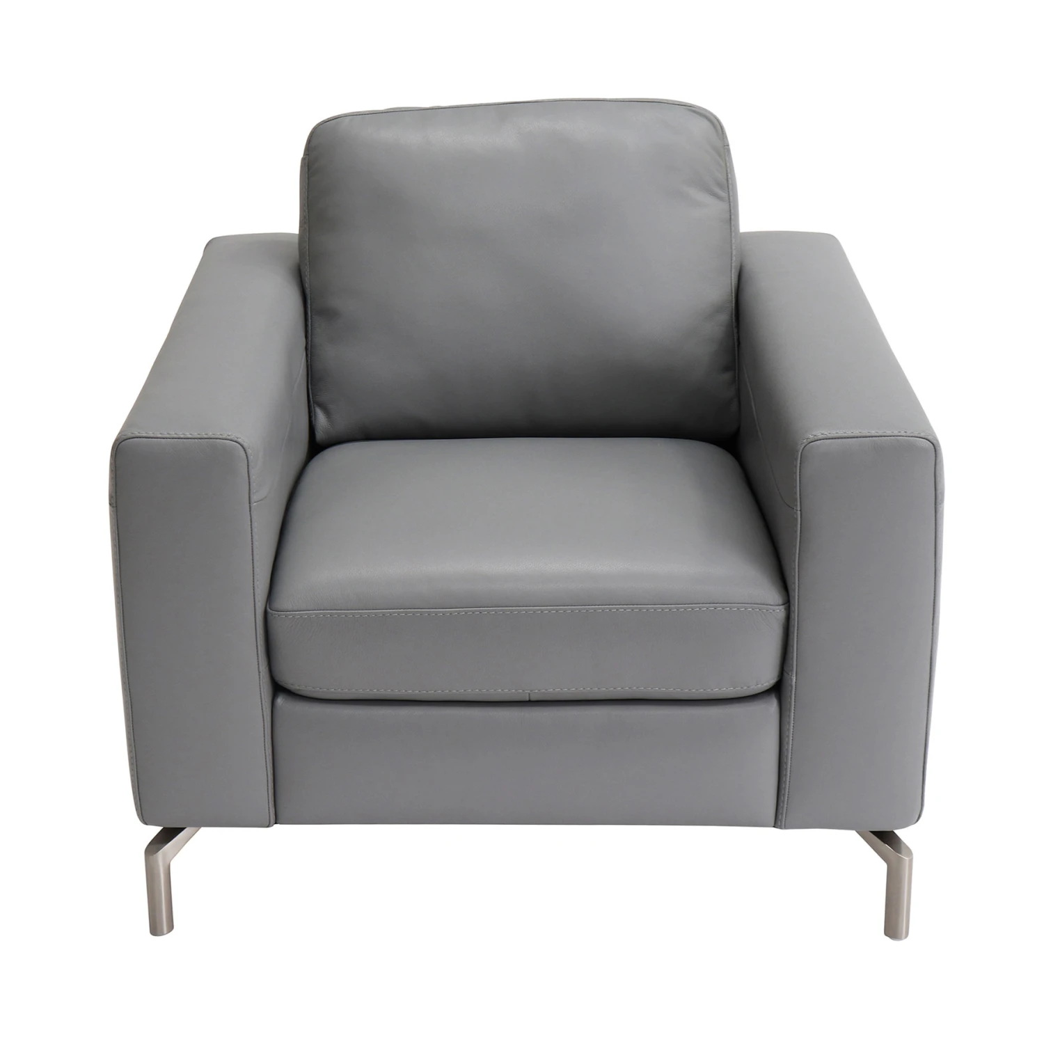 Upholstered in an easy-to-clean, neutral grey Italian leather with striking nickel plated legs and foam-filled seat interior, the Milano Armchair unites modernity with comfort, making it perfect for any family home or contemporary apartment.
