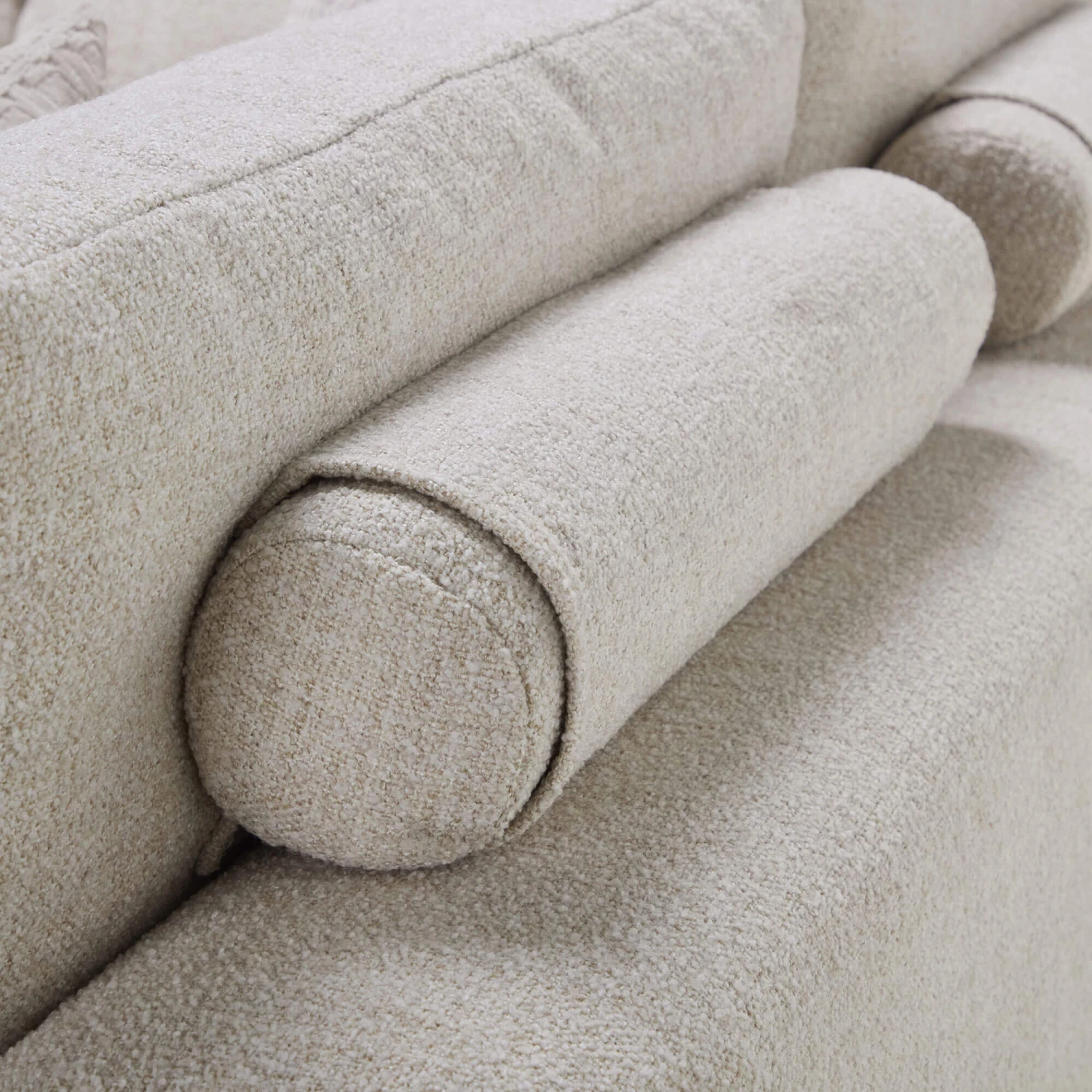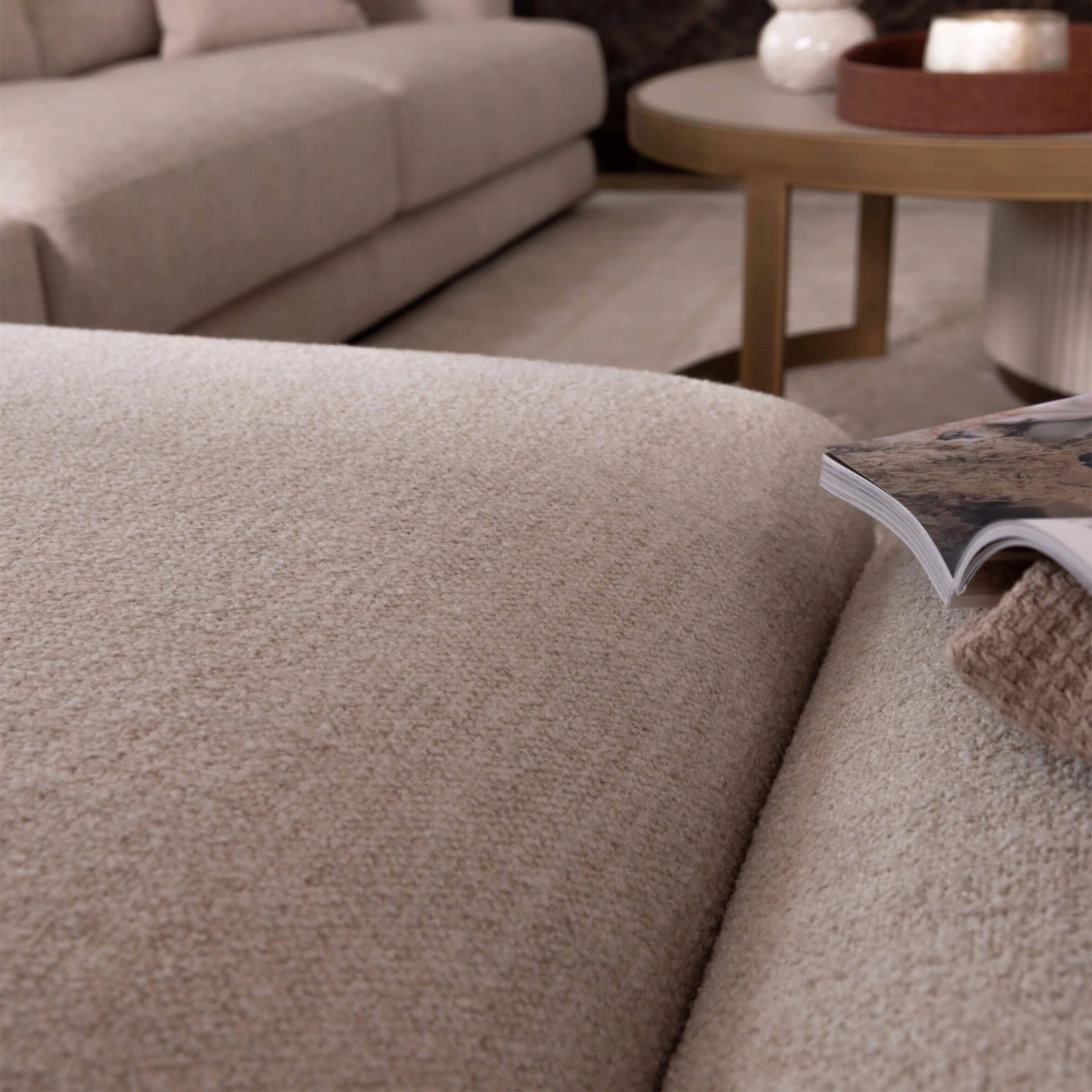 Accompanied with four scatter cushions in a neutral and brown tone filled with 100% responsibly sourced white duck feather, these cushions add an extra layer of softness and texture to your seating experience whilst enhancing the inviting allure of the sofa. Cosy, modern and easy to live in, the Naxos blends luxurious comfort with contemporary elegance, making it perfect for modern living rooms where both style and relaxation are essential with its generous seating and timeless design.