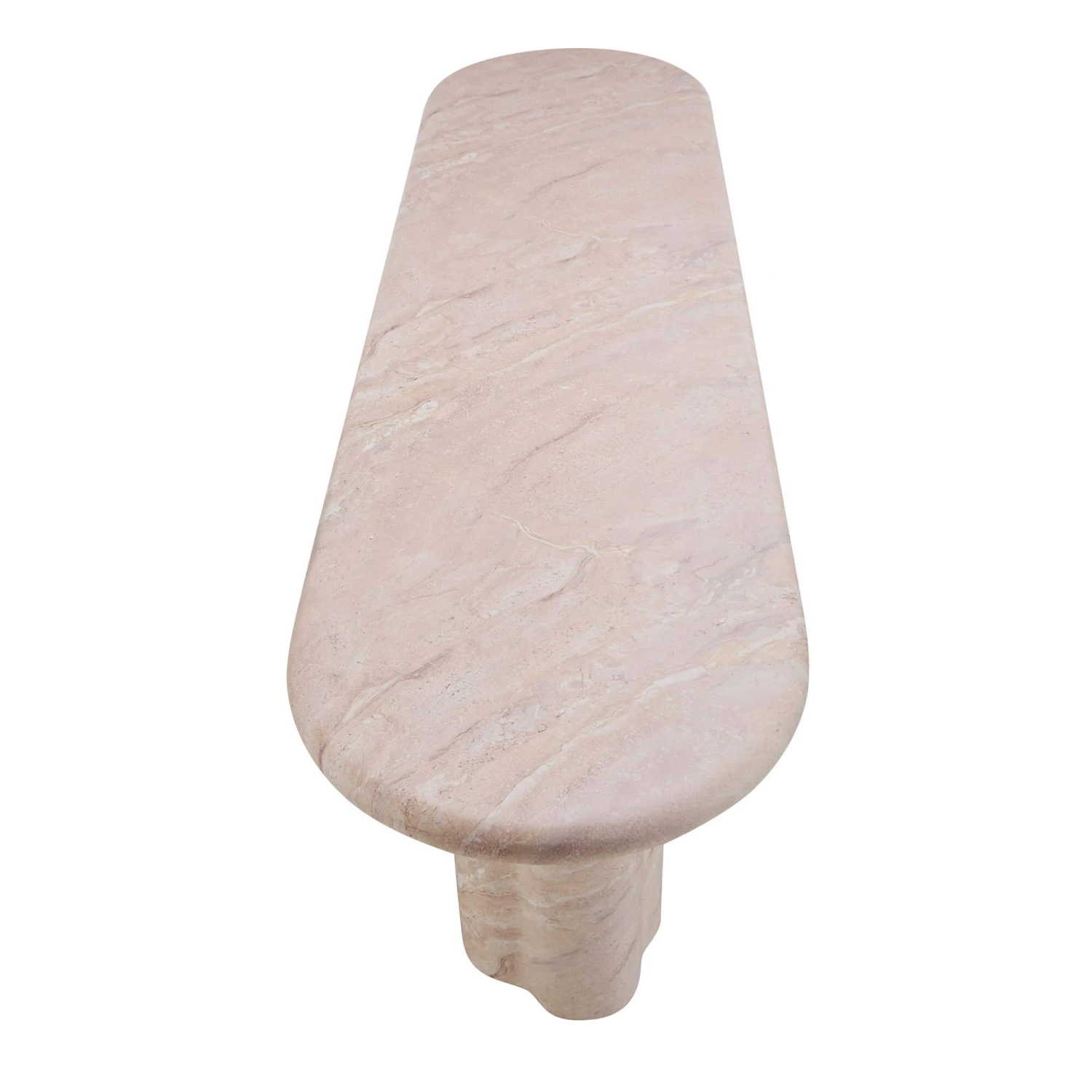 Echoing the beauty of natural stone, this console table is crafted from sturdy concrete and finished with a sophisticated travertine effect, showcasing a delicate striated pattern reminiscent of artisan stonework. The round-edged, elongated top sits gracefully above a striking wavy-shaped base, lending both drama and softness to hallways and living areas alike. At 150cm in length, this piece offers generous surface space for displaying art, cherished objects or ambient lighting.