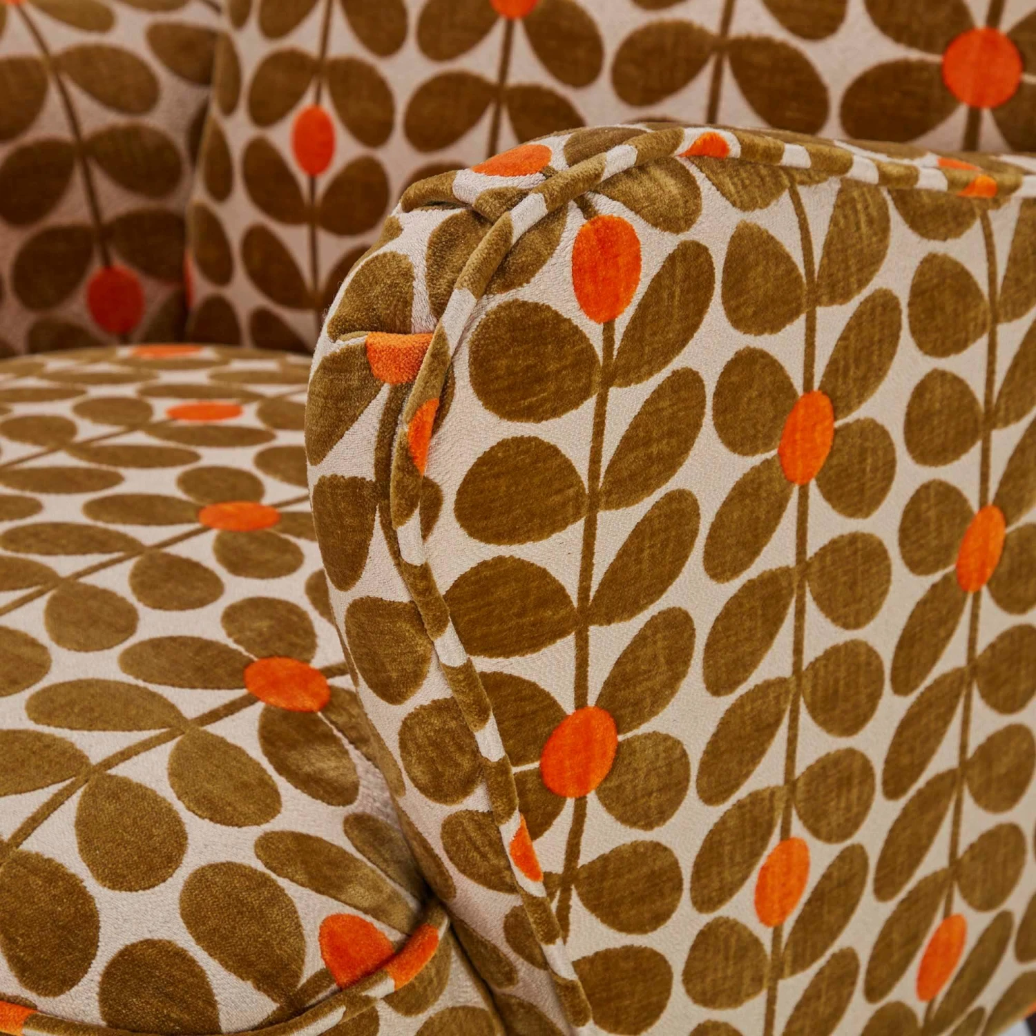 A true show-stopper with its attention grabbing design, the Alma Sixties Stem Fawn Armchair is a bold statement piece with a commanding presence, which is sure to inject some vibrancy and personality into your home interior. Perfect for those who do not shy away from pattern and colour, the Alma is instantly recognisable as an Orla Kiely design with its fun vibrant colours and iconic, graphic, 60s inspired print.