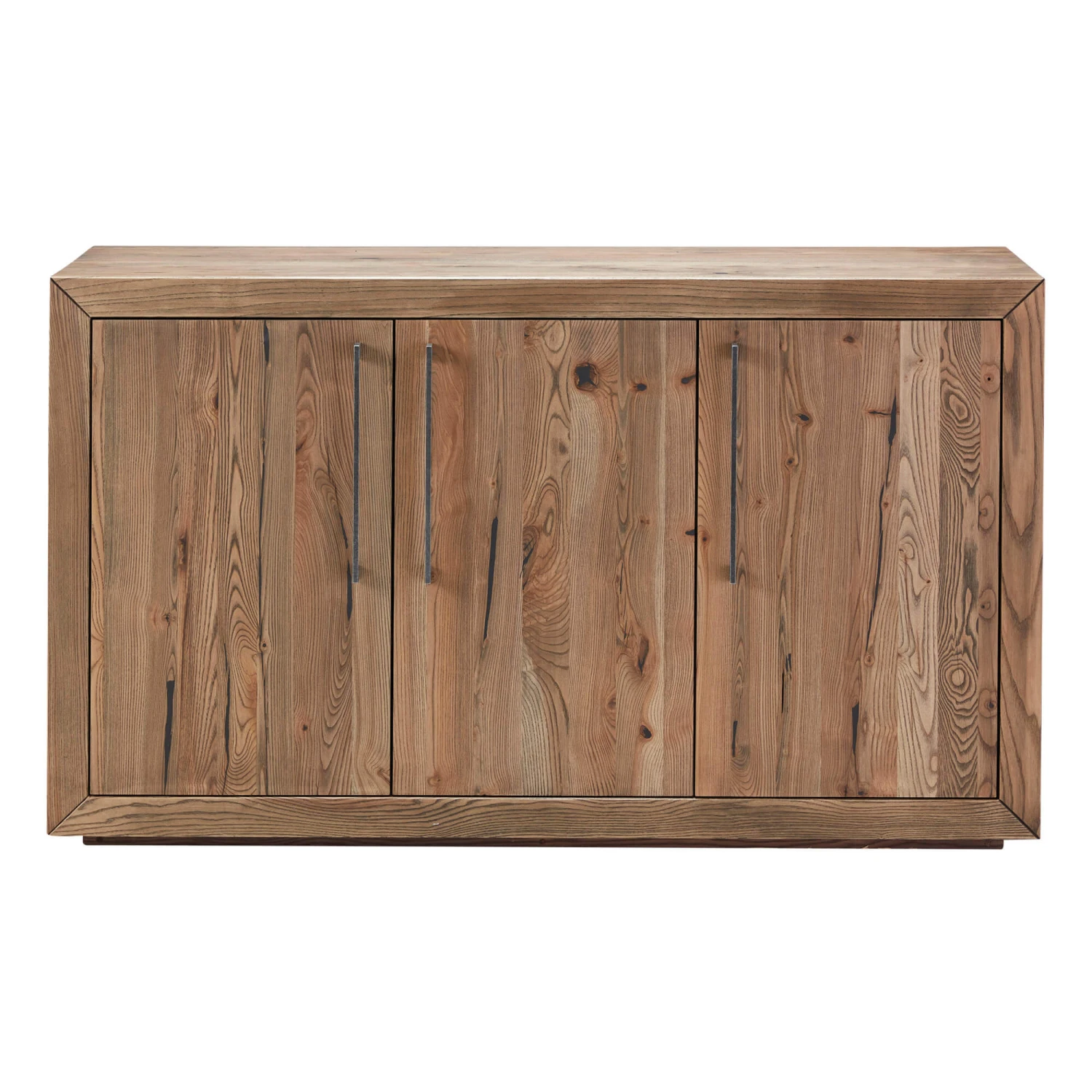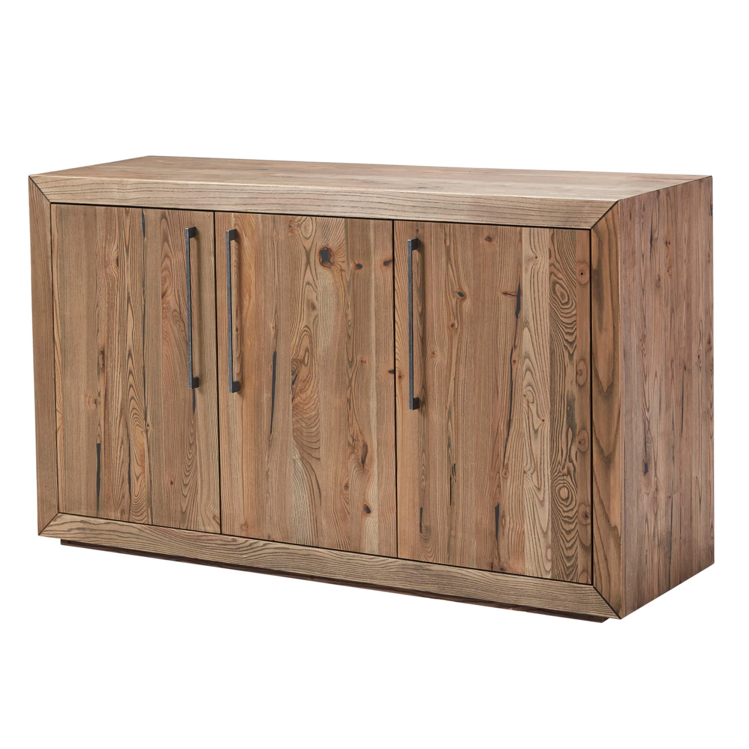 The Riga Ash Grey 3 Door Sideboard is made from natural, solid ash wood with a grey wash finish, giving a rustic appearance. The sideboard has three doors which each open to generous internal storage compartments, and is finished with black metal handles that contrast beautifully with the neutral tones of the body whilst adding to its industrial feel. This sideboard is designed to be displayed in a hallway, living room or dining room, and is complimented by the rest of the Riga range.