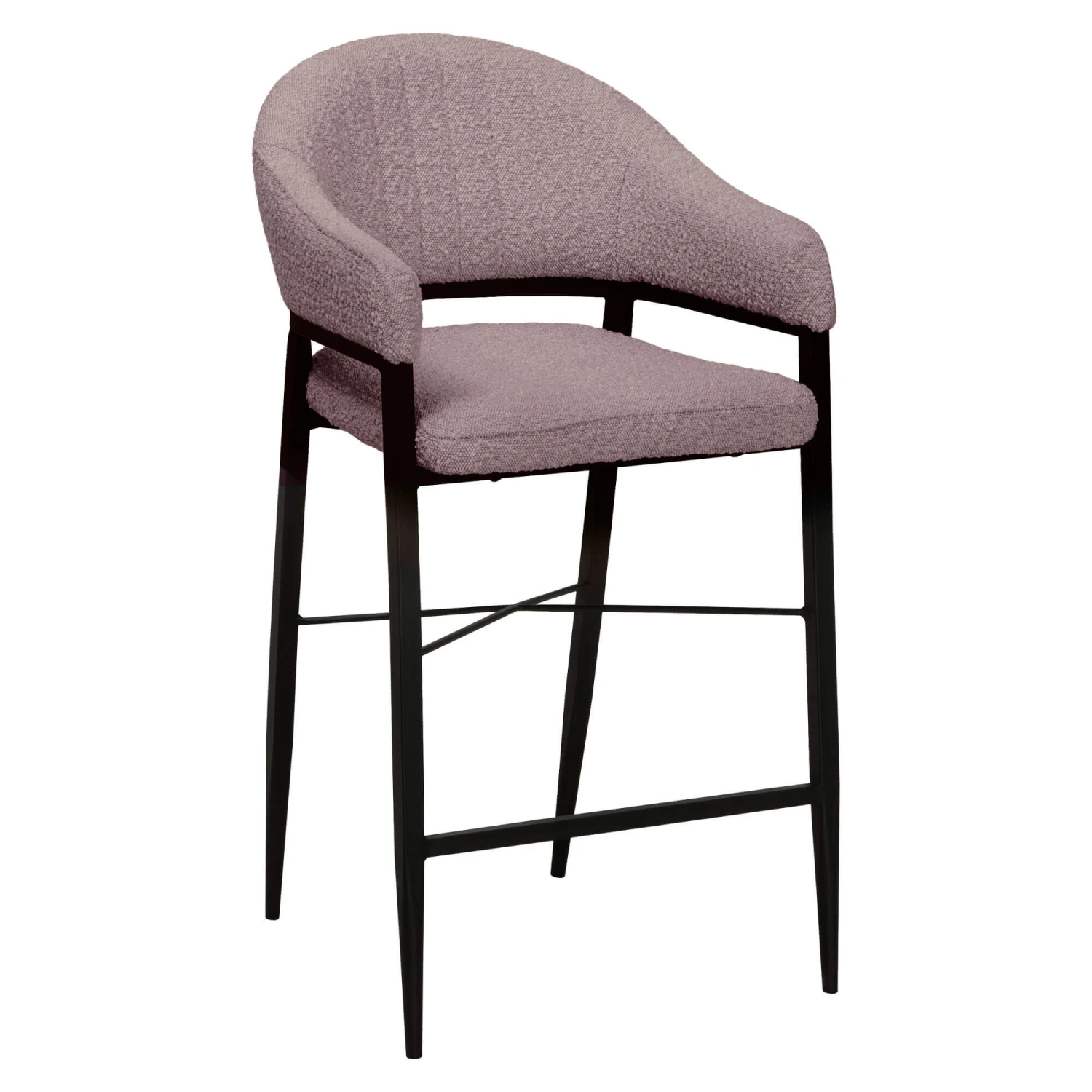 A sleek bar stool designed with comfort in mind, featuring a curved back and armrest with a padded plush boucle fabric. The counter bar stool height is slightly lower than a standard bar stool, making it perfect for fitting underneath counter tops. The black frame creates a modern style in your kitchen or dining space, whilst the taupe fabric adds warmth and neutral tones to your home.