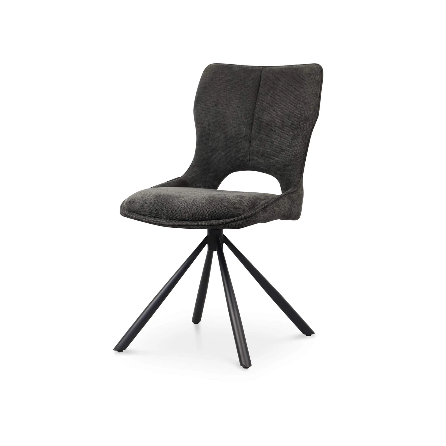 The Constance dining chair offers a warm grey tone to your dining space crafted with a 360° swivel design and a soft seat and back fabric. The sleek frame is mad with complementary metal tube legs in black powder coating finish for a sophisticated look.