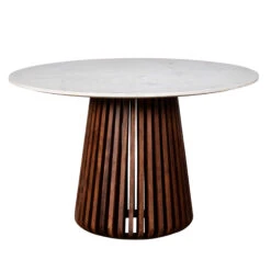 Albana 120cm Round Travertine Effect Dining Table & 4 Comfort Mink Dining Chairs