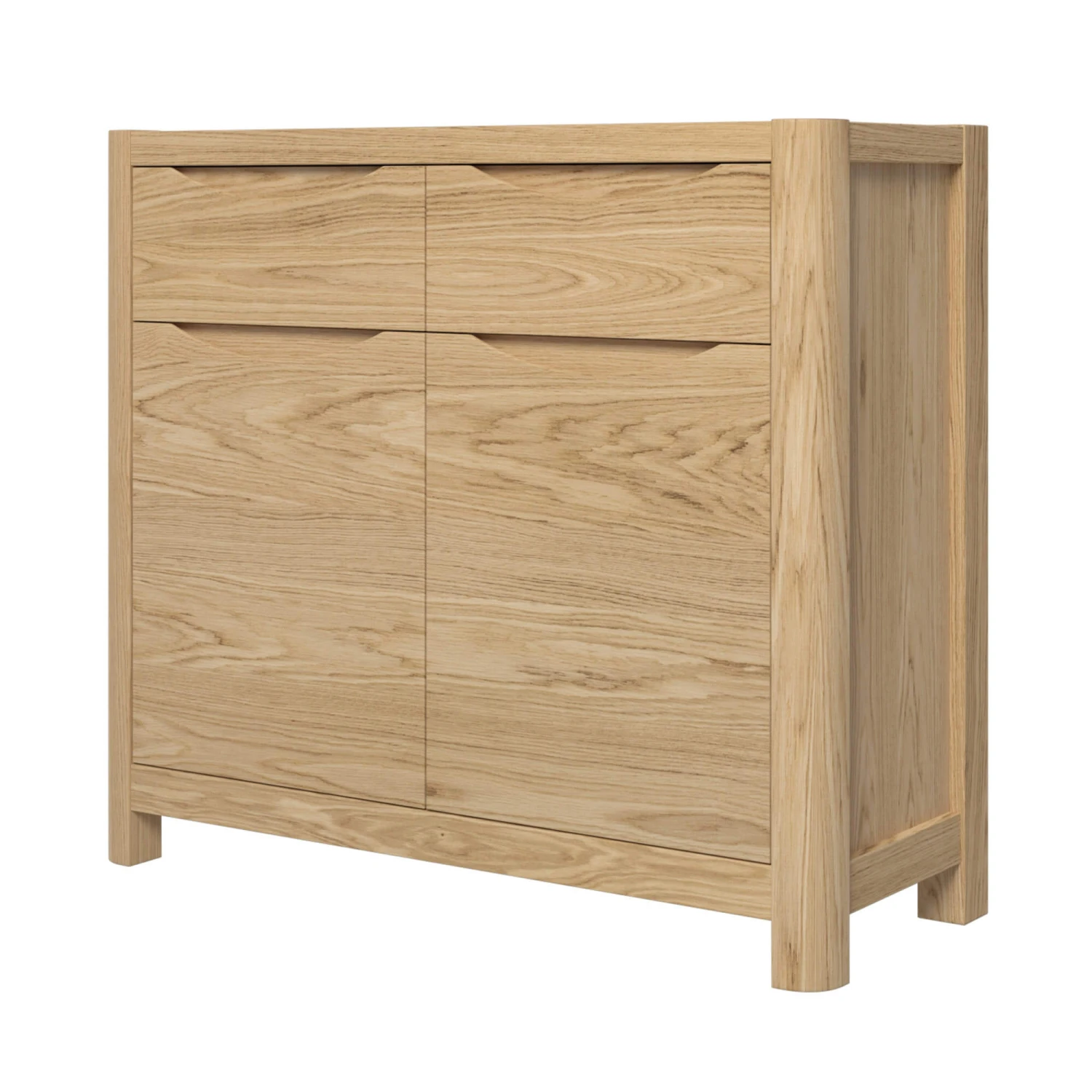 The Stockholm 2 Door Sideboard is the perfect size for apartment living or small lounges or dining areas where space is limited, with its compact, space-saving design. Its 2 drawers are deep and aptly sized to offer a convenient space for small item storage and the 2 door cupboard provides adequate space for your finest dinnerware and napery for entertaining. Accompanied with its elliptical shaped, recessed handles and smooth, soft close runners, which ensure that the drawers open and close with ease, this sideboard is a practical piece, made with small living spaces in mind.