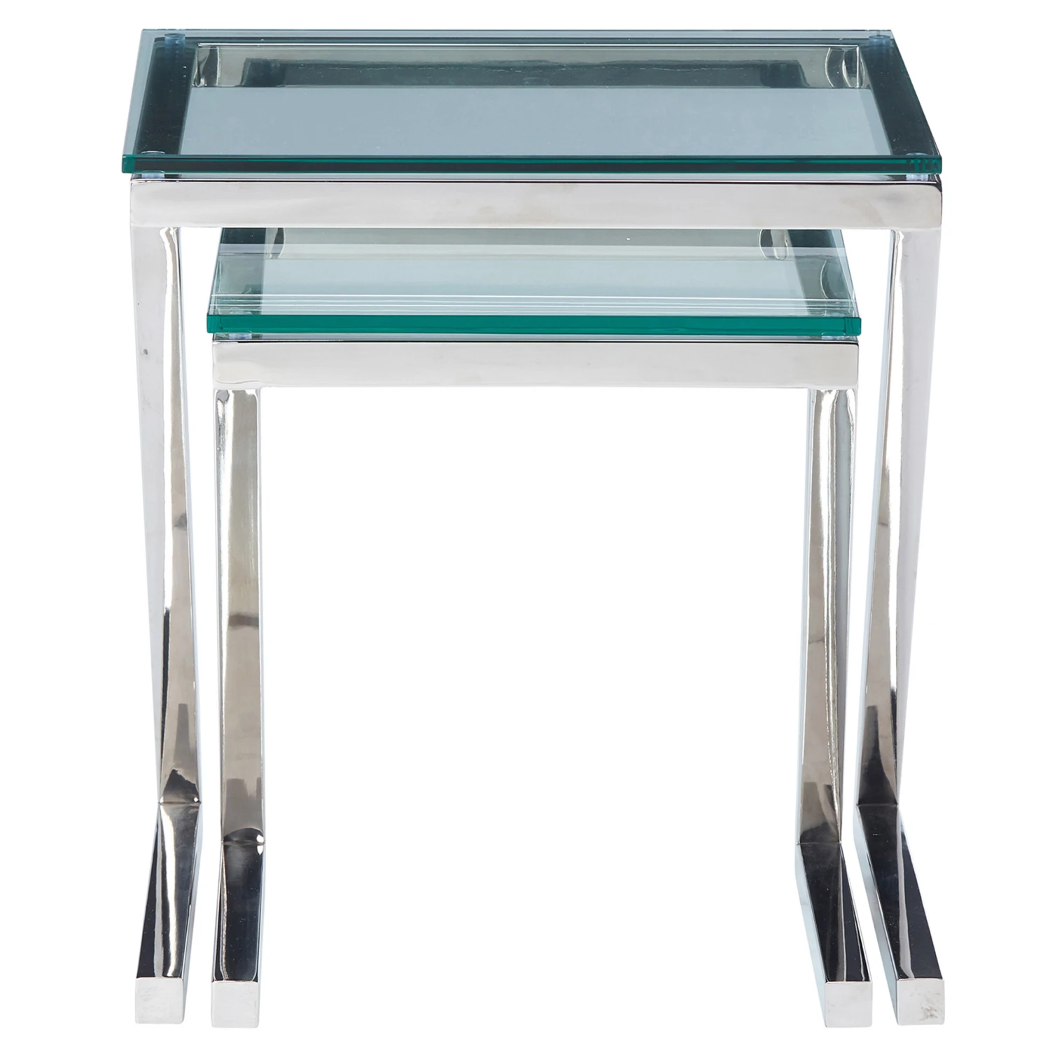 Storm Glass Nest Of Tables With ‘Z’ Shaped Chrome Legs