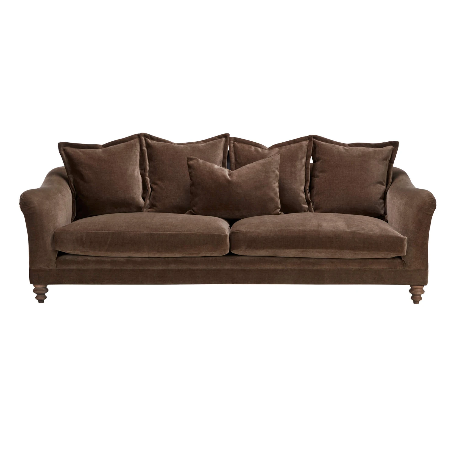 Indulge in timeless design and exceptional comfort with the Tetrad Gatsby Deep Brown Fabric 4 Seater Grand Sofa. This inviting piece features a classic silhouette, with luxurious dark brown fabric upholstery, a plush scatter back design and turned walnut wooden legs, creating a warm and sophisticated look that complements any living space.
