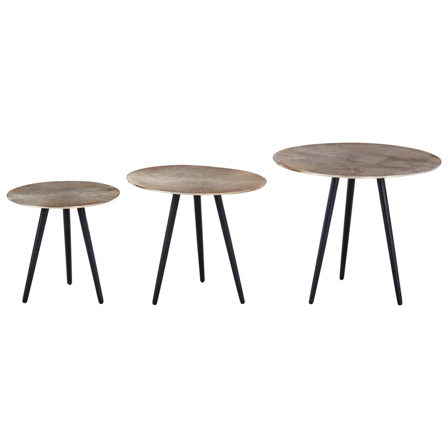 Contributing to the character of the nest of tables is the simple, yet unique pattern on each the table tops as well as the matte black angled legs on each of the tables- ultimately radiating an element of understated elegance.