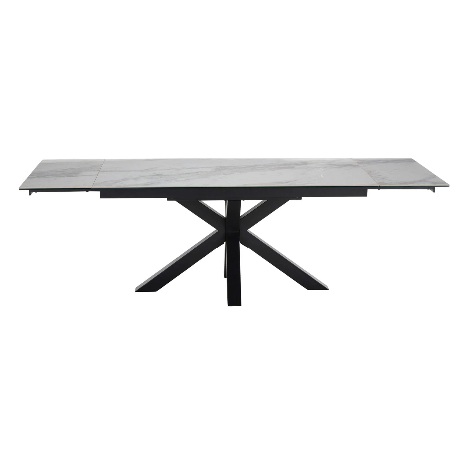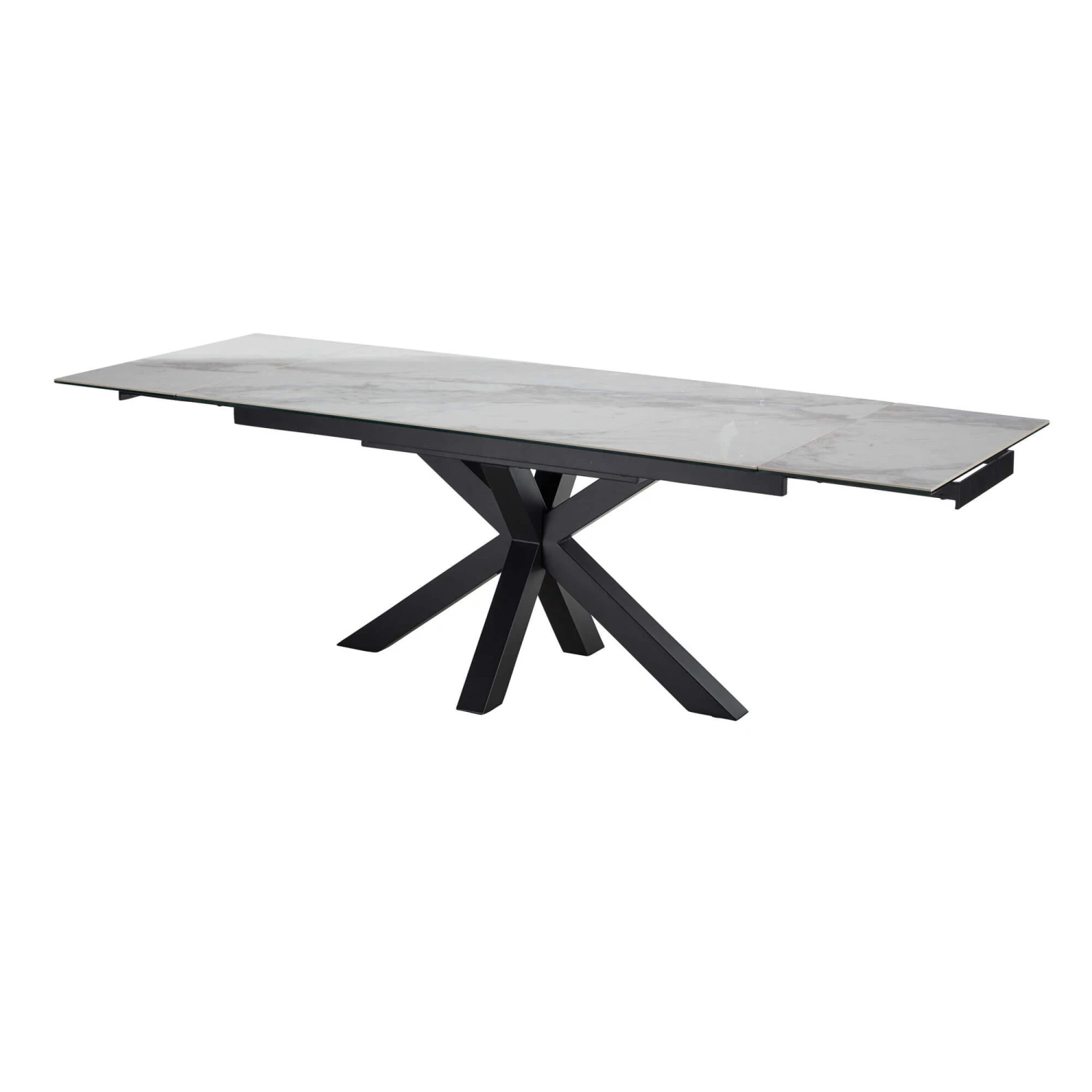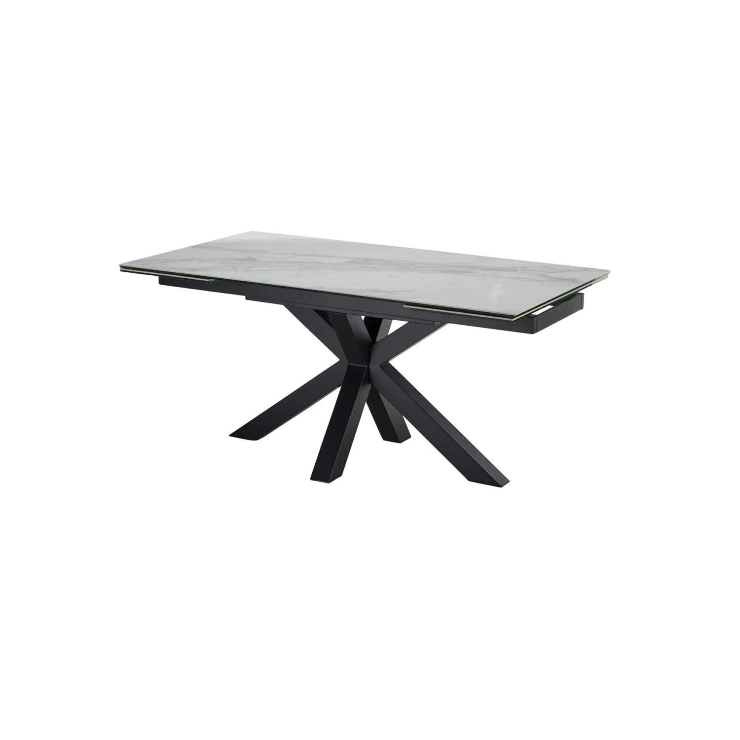 The Vittorio dining table offers a sleek white ceramic table top resting on a minimalist cross over black base with an effortless extending mechanism that allows you to host up to ten guests with ease combining functionality and style. The neutral s9 palette is sure to compliment any existing home decor or dining chairs